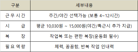 - 용역 업체 활용: 인력 사무소나 아웃소싱 업체를 통해 단기 알바 신청 가능
