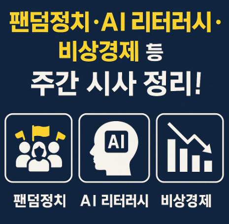‘팬덤정치’, ‘AI 리터러시’, ‘비상경제’ 등 이번 주 시사용어들은 앞으로의 정치·사회·경제 흐름을 이해하는 데 중요한 단서가 됩니다. 블로그에 주간 시사 브리핑 코너를 운영하면 20대~30대 구독층 확보에도 유리하니 한 번 도전해보세요!