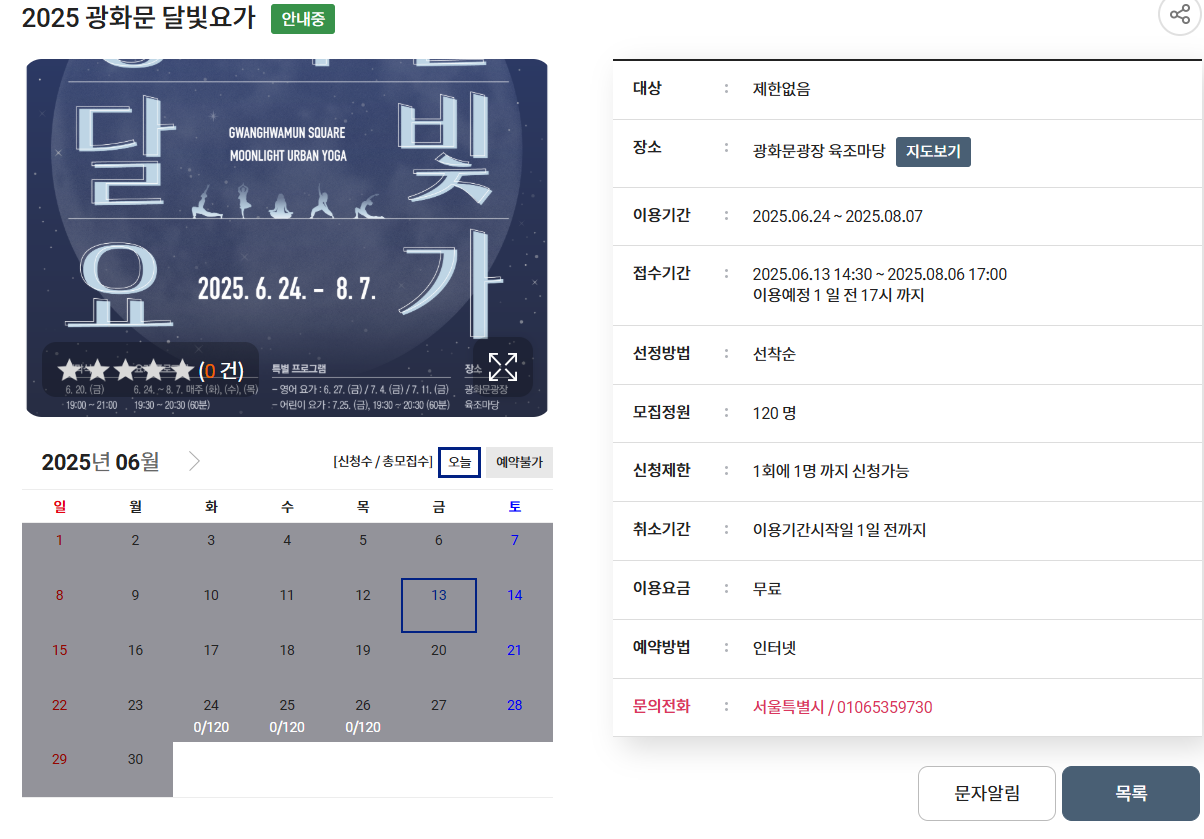 - 대상: 서울시민 누구나 (선착순 120명)