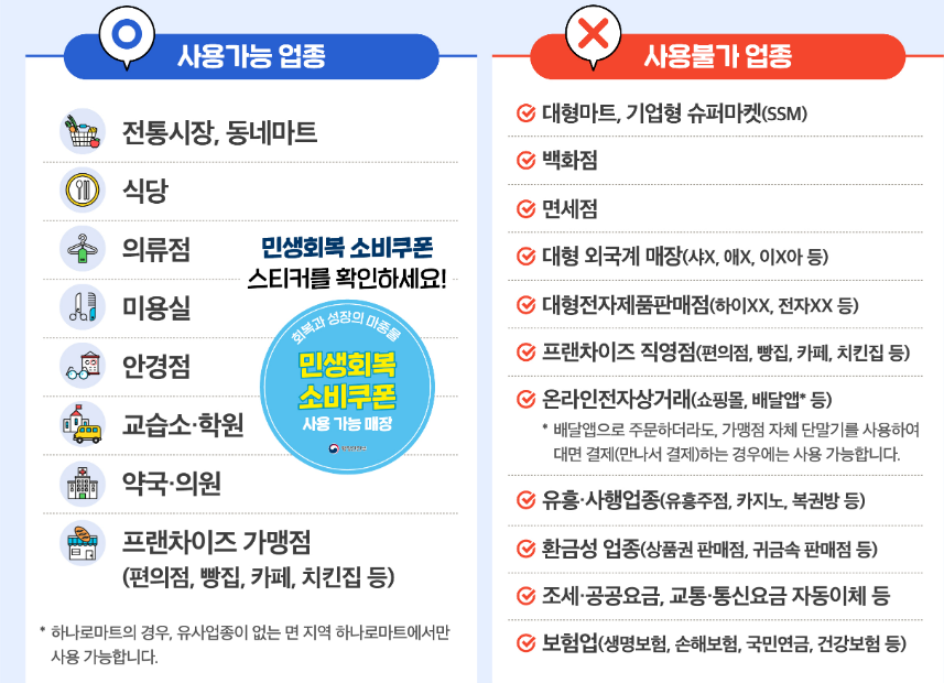 • 소상공인 매장 : 음식점, 편의점, 미용실 등 생활 밀접 업종