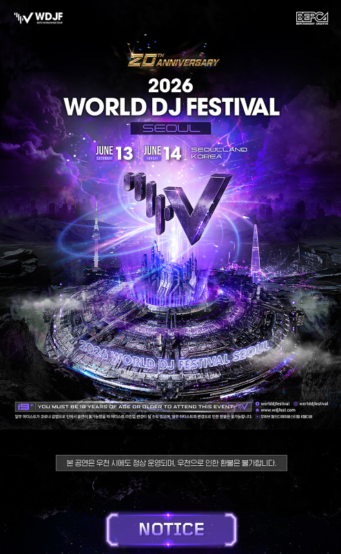2026 월드 DJ페스티벌은 음악과 열정, 그리고 사람들의 에너지가 폭발하는 순간을 함께할 수 있는 최고의 EDM 축제입니다. 공연 일정과 라인업을 미리 확인하고, 얼리버드 티켓으로 합리적인 가격에 예매해 보세요.